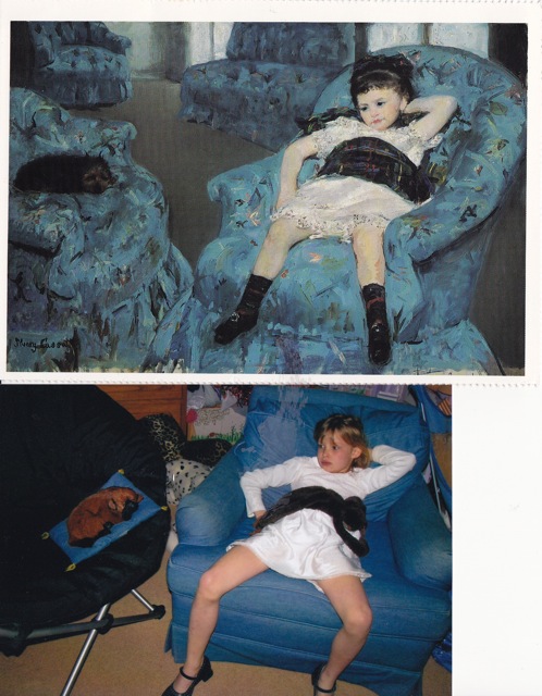 These are picture studies we did in our homeschool of Mary Cassatt and Norman Rockwell. Of all the picture studies we have done, photography has been the most fun. It seems to cement the image in our minds. Both my girls came up with their own props and had very little advice from me other than positioning. We all really had to study the paintings. And then I had to get out of the way and just start taking pictures. 🙂