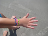 We make memories with hand prints in plaster decorated with God’s abundant jewelry box of shells