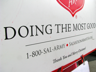 Some people hide their eyes and look down when they slip money in the red bucket, like they don’t want to be noticed.