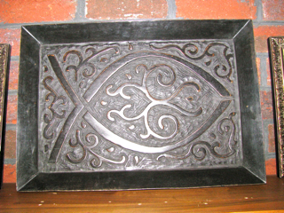 This carved Ichthus symbol of Christian faith is made from beautiful mango wood.