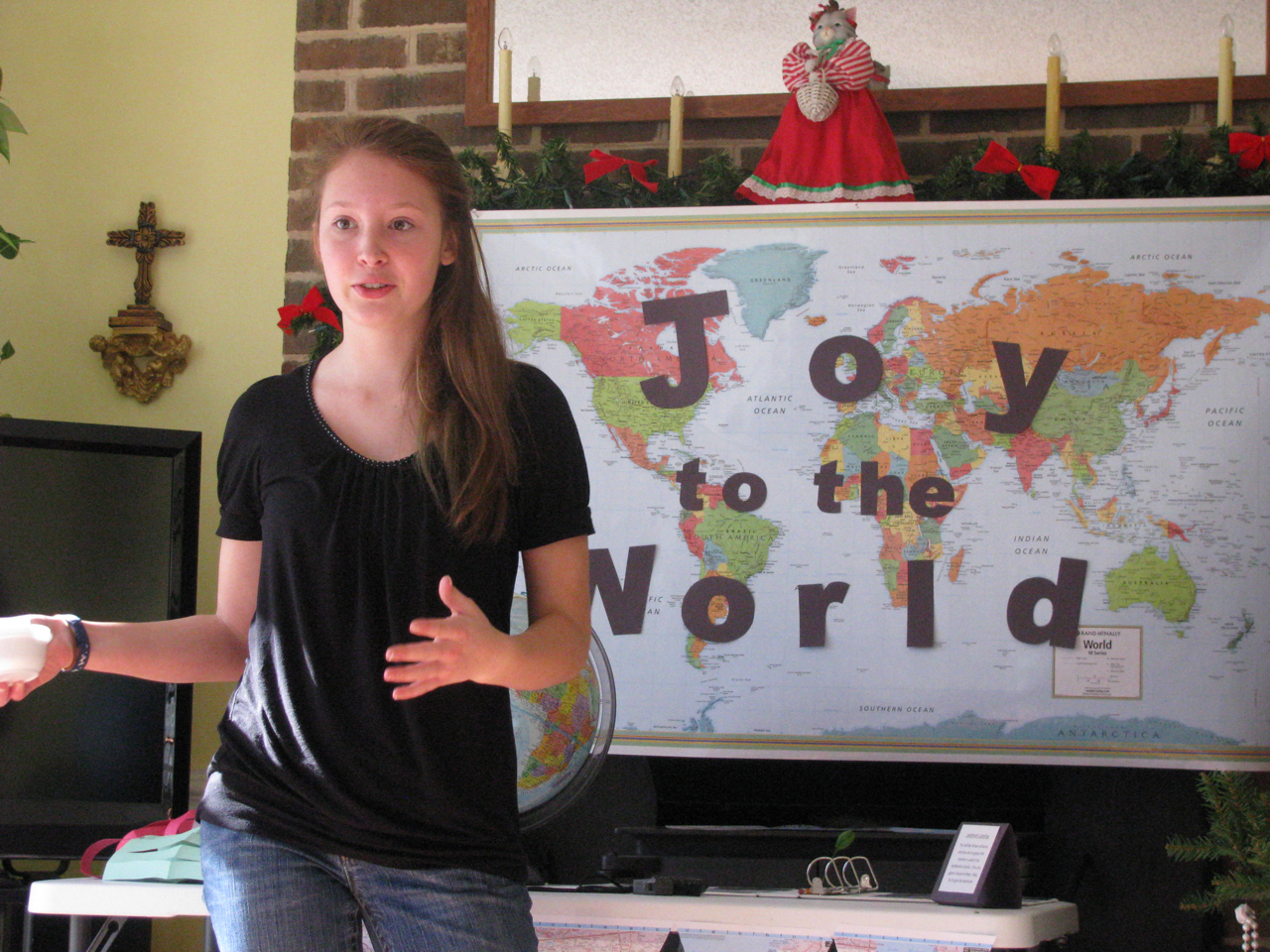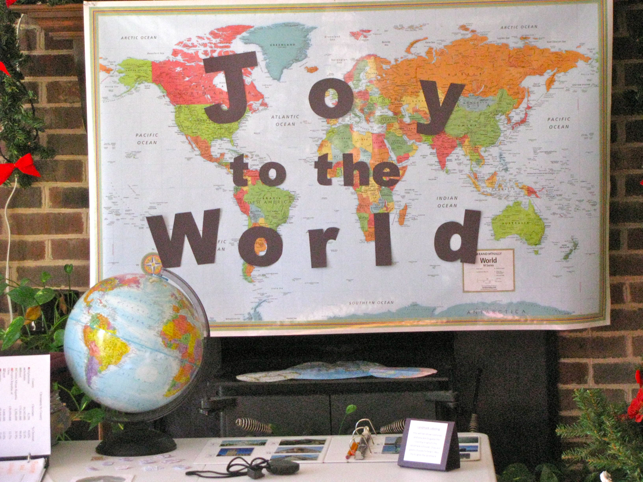 ‘Joy To The World’ letters were attached to a map of the world that our host already had in her school room.